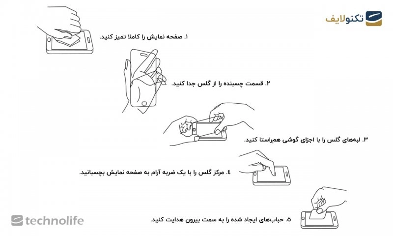 برای چسباندن محافظ شیشهای (گلس) روی صفحه نمایش: