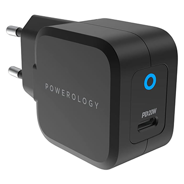 Powerology P20WGNEUBK Ultra-Compact 20W PD GaN Charger EU